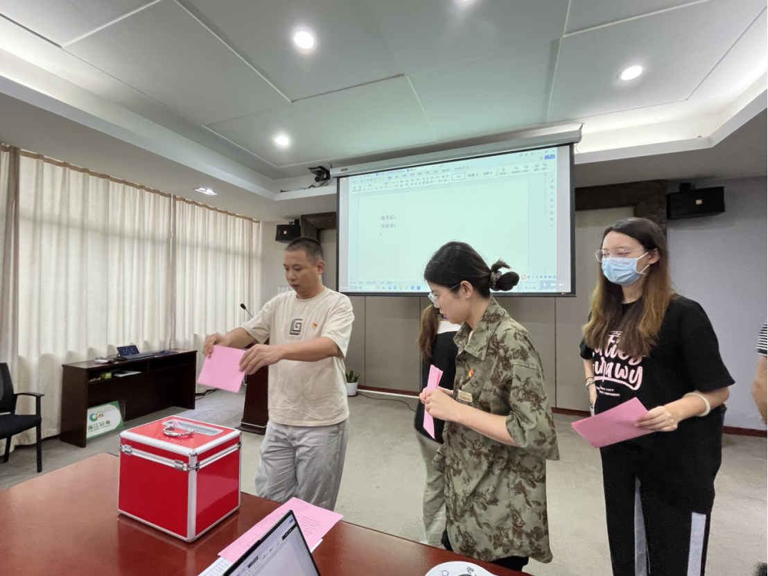 大會第二項,進行了冠豪高新黨員代表大會代表補選工作,會議以無記名投票的方式差額選舉了謝美虹同志為缺額增補的黨代表。