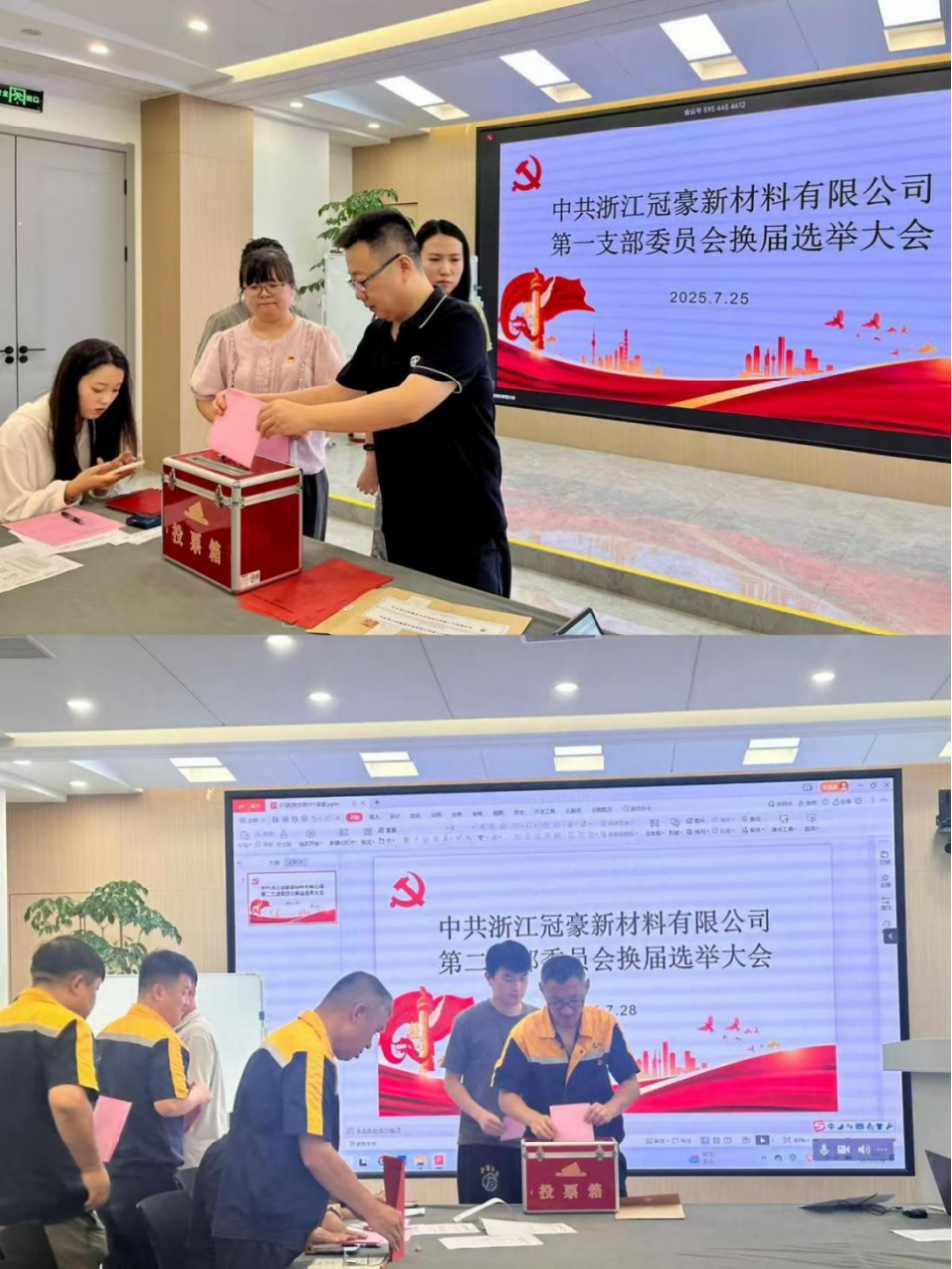 7月25日與7月28日,浙江冠豪黨總支及所屬黨支部相繼召開換屆選舉大會,圓滿完成了黨總支及兩個黨支部的換屆選舉工作,為企業高質量發展提供了堅強的政治和組織保證。